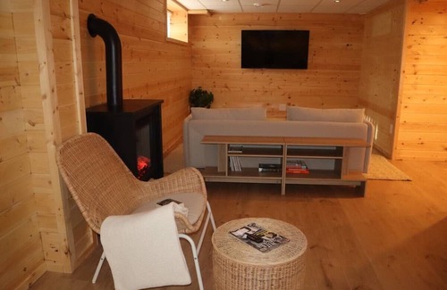Thoughtfully designed with a blend of rustic charm and modern comfort, the suite features warm pine finishes, an open-concept layout, and curated furnishings that make it feel like home. Whether you're here for work, relaxation, or a bit of both, you'll find everything you need.