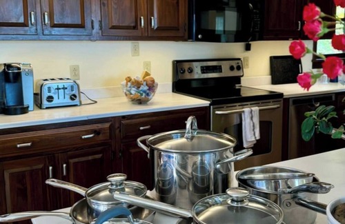 Free wireless internet, high-quality firewood, strong cell signal, top quality kitchen appliances, large charcoal and gas grills with utensils. Garage, W/D, central air/heat, and every room smoke-free. Child-proof electric sockets, child-alarm doors leading to the pool , and door gates upstairs for toddlers.
