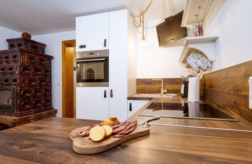 This spacious holiday home welcomes you with traditional charm and promises the whole family relaxation and enjoyment of delightful extras. Serve regional specialities in the charming dining area, browse through a good book, treat yourself to some soothing moments in the sauna after a long day, organise fun game nights on the cosy sofa or stream your favourite series.