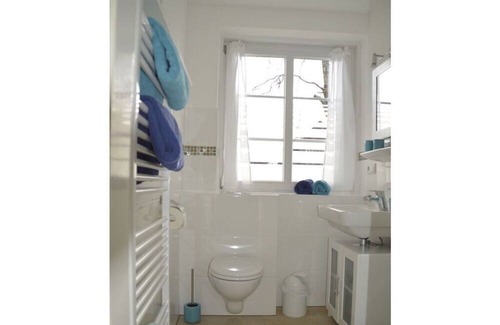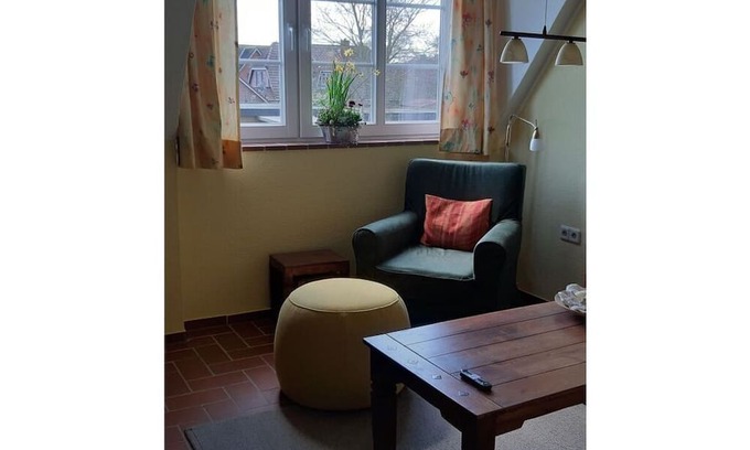 In our apartment on the upper floor, the evening hours can be spent well in the cozy living room with electrocamine. The well -equipped modern kitchen, with dining area for 3 people, ceramic hob, oven and dishwasher, also invites you to linger. After eventful days on the beach, in the beautiful North Frisian nature or on the water, salt and sand in the brand new bathroom with shower can be rinsed off the skin. The best prerequisite for relaxing sleep and to sleep out in peace can be found in the cozy bedroom with a double bed. For relaxed sunshine in the garden, we have created protected seating areas including a beach chair in the garden, garden loungers for you.