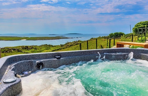 Ireland's most spectacular view at ultra-luxury glass villa with deluxe hot tub is located in Roundstone. Ireland's most spectacular view at ultra-luxury glass villa with deluxe hot tub provides accommodation, featuring among other amenities. This Villa features to make your stay a comfortable one.