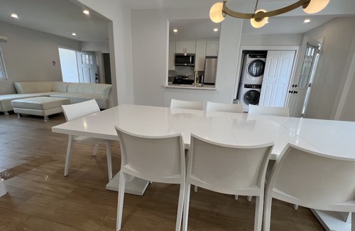The space is truly a one of a kind. You will love this place as it’s the perfect place for a large group or a family. Very private large corner lot with high privacy fences all around the back yard. Furniture and house accommodates 8 people. Living room, dining room and kitchen flow and has an open concept. Each bedroom has a fan, TV and a queen size bed. I also use the highest quality linens with 800 thread count that feels like luxury. Central location closed to everything Los Angeles has to offer! Located in a desirable nice neighbourhood.