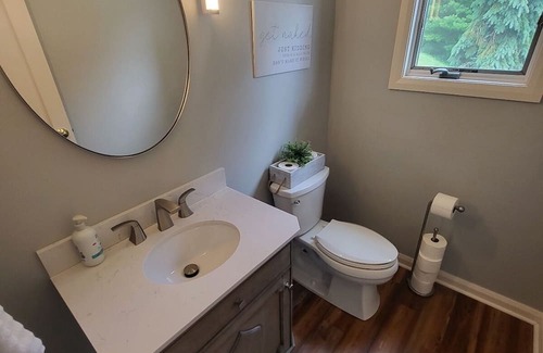 Welcome to our waterfront home overlooking Buckeye Lake. Minutes from popular locations like Papa Boos and Waterfront bar and grills, our home is a 2 bedroom, 2.5 bath home that is perfect for family getaways. There are two available dock spots available if you would like to bring your boat. Whether you want to spend the day on the lake tubing or skiing, take boat rides to listen to live music at one of many of the local bar and grills on the lake, or relax and take in the beautiful views from the back deck, this place is for you.