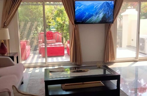 Situated 1.5 km from Al Jazeerah Beach, Luxurious Cozy Villa with Pool Access offers a private beach area, pool with a view and air-conditioned accommodation with a balcony and free WiFi. With garden views, this accommodation provides a patio. There is free private parking and the property features paid airport shuttle service.