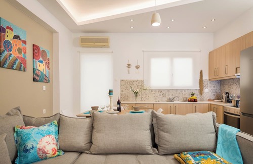The villa is located 500 meters from the city center the agora square the heart of chania and also 500 meters from the old venetian harbour . you can do anything by walking due to its so close to the beach and the city center .