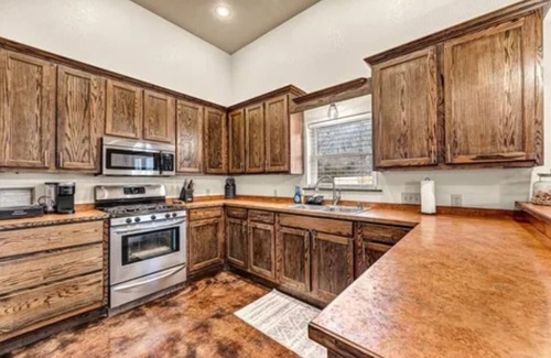 Beautiful, open concept, newly updated home is located only minutes from downtown Eureka Springs. Just outside of town, you are often able to see deer, turkey, and other wildlife. It has a large kitchen, a cozy living room, and two bedrooms. The full bathroom is located in the master bedroom, along with a large closet and laundry room space. Each bedroom and the living room have TVs, there is a pretty outdoor patio with grill, and a fire pit. There is also a large garage space available for an additional fee. This home is quiet and serene, giving you a perfect getaway.