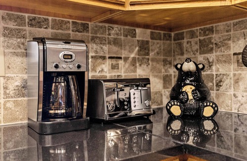 The inside of this exquisite home is a decorator's dream. The decor is stunning, and we guarantee that every day you walk thru the home you will notice something new. Immediately as you enter, views of the lake will pull you thru the home as you pass a custom carved Bear Newel post directly to the lake view deck. The light and bright main level lake view living room features high vaulted ceilings, stone GAS FIREPLACE, wood floors, antler chandelier, giant 65 inch SMART TV, and ample seating for everyone. The open floor plan connects the living room, dining area and kitchen. The lake view dining table seats six for mealtime, playing one of the many board games provided, or planning the next day's activities on the lake. Adjacent to the dining table is a breakfast bar with three leather bar stools ideal for overflow seating, morning coffee, or just talking with the cook. Steps away is a fully equipped lake view kitchen with all the dishware, cookware, and utensils you will need for preparing vacation meals. It has plenty of counter space, refrigerator freezer, double oven, electric stove, microwave, dishwasher, and coffee maker. Right outside is a GAS GRILL. Rest assured, the kitchen is equipped with all the essentials to prepare gourmet meals, as the Homeowner was a regular on the TV Food Network.