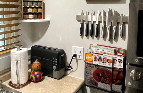 Bring your own wine—we provide wine glasses and corkscrew. Dine at one of the many nearby restaurants, or have a night cap at downtown hot spots. Our Guestbook provides recommendations for our favorites. Need to wash clothes? Our laundry space has washer and dryer with complimentary detergent, fabric softener, etc. for your convenience.