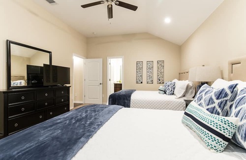 In the heart of Dallas, Perfect for big group get togethers or small gatherings.Relax in the pool. 4 queen size beds and 2 king, make for the perfect group get together. Close to downtown and many other Dallas area hot spots. Relax in the large living room or in the benches in the park across the street. Modern amenities like high-speed Wi-Fi, Smart TV. Prime location near Downtown and Bishop Arts.