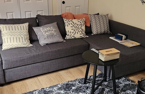 It is an old building with its kinks, but it would be a nice place when seen through a lens. The location is excellent, and everything needed is within walking distance. The neighbours are lovely. The unit is up a flight of stairs and has a new kitchen fully stocked with three bedrooms and a sofa bed that could accommodate up to 7 guests.