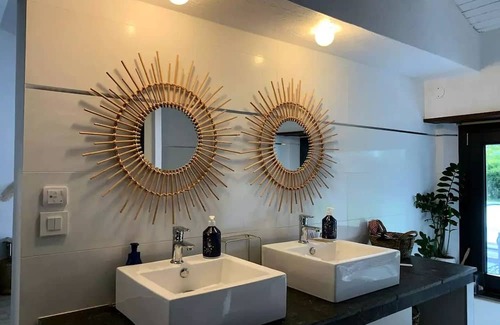 Also enjoy the superior quality outdoor facilities, including a 10m x 4.50m swimming pool covered by a motorized shelter for use all year round, as well as a Sundance SPA that can accommodate up to 5 people. A dining area with table, chairs, plancha and a lounge area around the pool invites you to relax and unwind in a luxurious setting.