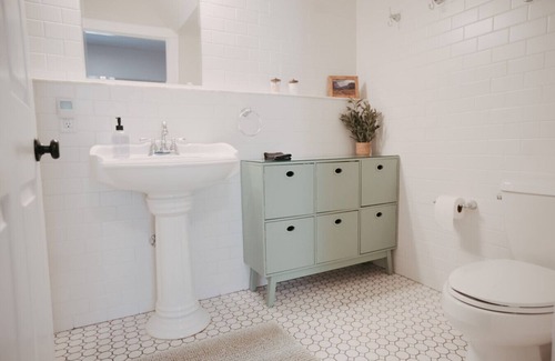 Please note that this Suite is an individual room in a *former* Bed and Breakfast. It does not have access to a kitchen, but is furnished with a mini fridge, microwave, Keurig and tea kettle. We provide paper plates, napkins, utensils, hot cups, and a variety of snacks.