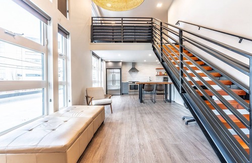 Open and unique layout, the loft features a comfy bed, elegant living, a great bathroom, working space and high speed Wi-Fi.